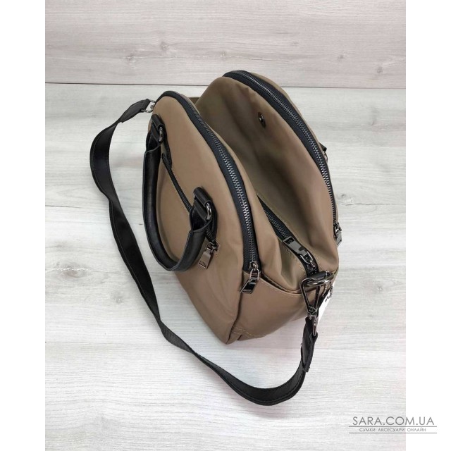 Сумка має три відділення на щільній підкладці, які закриваються на блискавці. У верхній частині посередині, сумка стягується магнітом. У крайніх відділеннях по кишені: на блискавці і відкрита. З боків сумки є відкриті кишеньки. Так само є кишеня на блискавці для дрібних предметів.