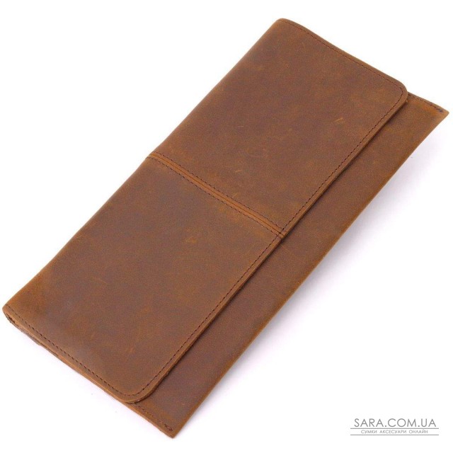 Стильний чоловічий гаманець із якісної натуральної вінтажної шкіри, що закривається клапаном на кнопку. Модель має одну секцію для зберігання купюр, які не складаються при використанні аксесуара, 6 слотів для кредитних карток, монетницю на блискавці, а також одну прилеглу кишеню. Кожен сучасний чоловік оцінить усі переваги якісного гаманця із натуральної шкіри.