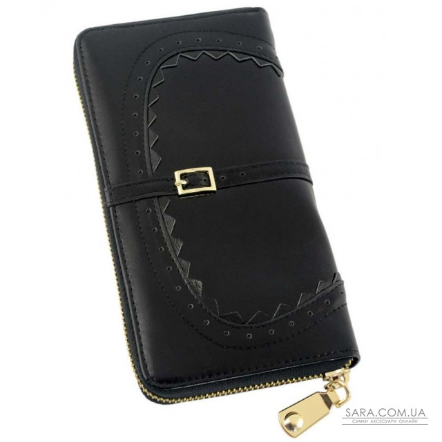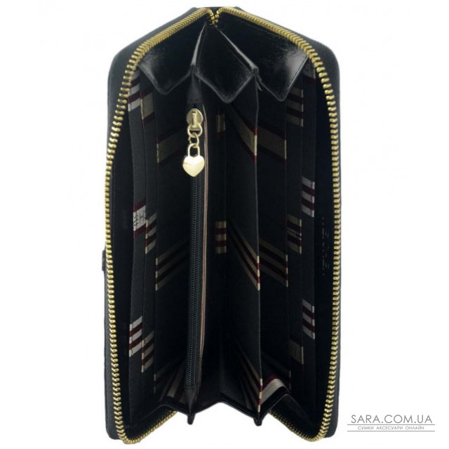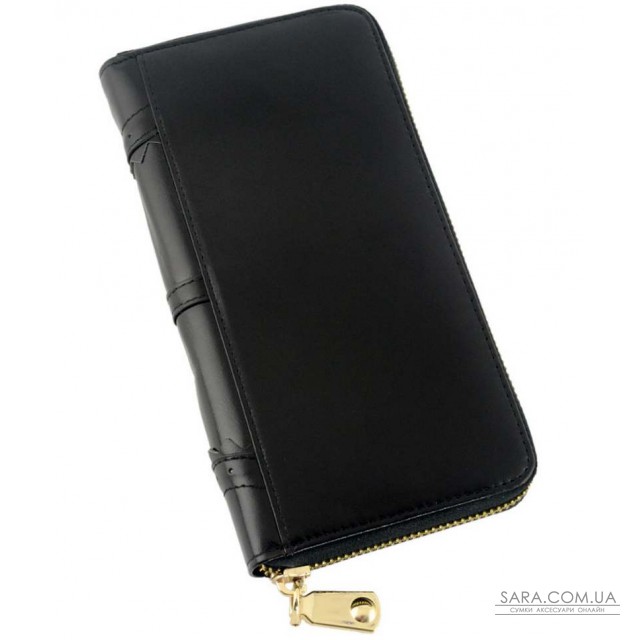 Портмоне чорного кольору виконаний з натуральної шкіри, закривається на блискавку. Всередині 3 відкритих відділення та 1 на блискавці, 10 кишеньок для карток.