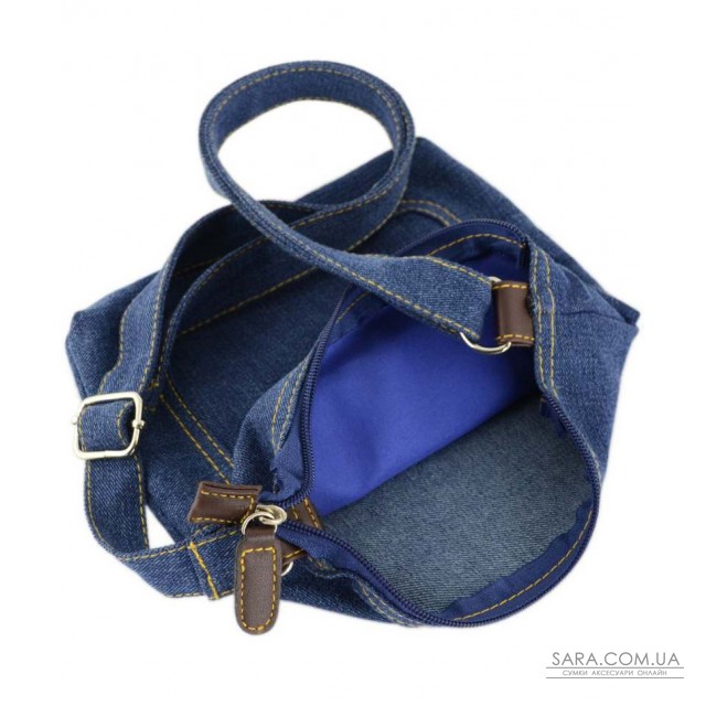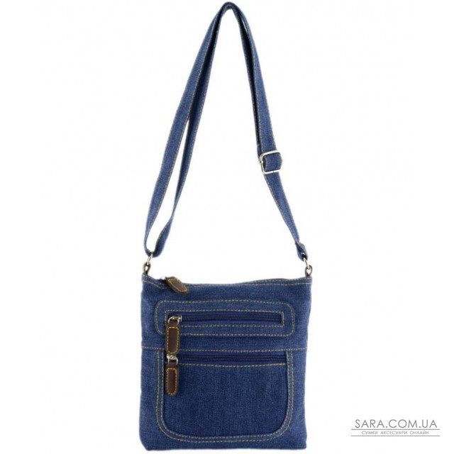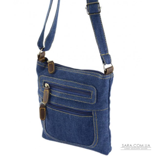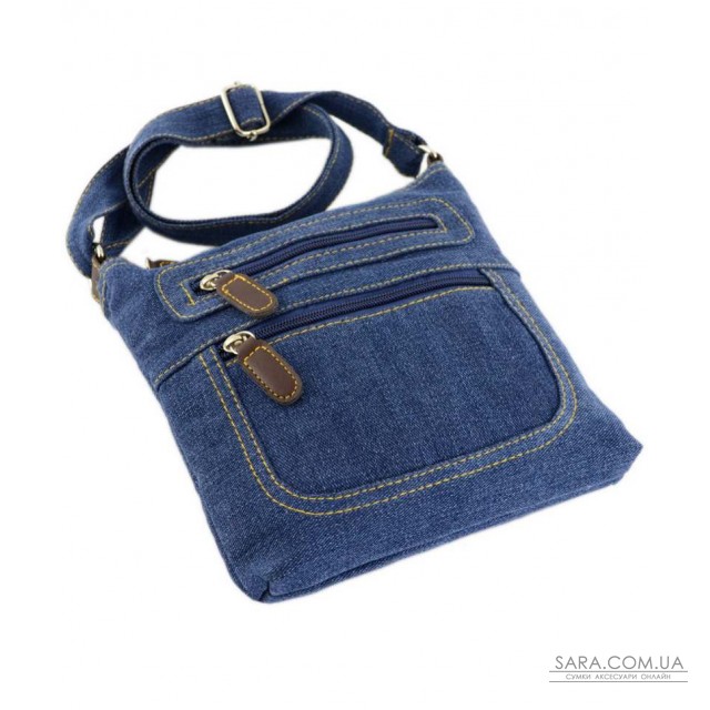 Легка джинсова сумочка на довгому регульованому ремінці. Попереду 2 кишені на блискавці. Без підкладки.