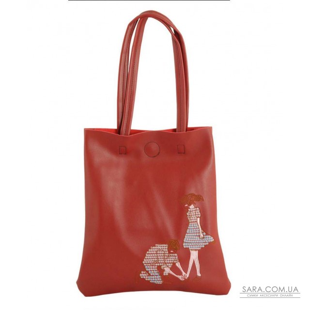 Сумка-шоппер з вишивкою червоного кольору, закривається на кнопку-магніт. Всередині 1 кишенька на блискавці, без підкладки. Ручки середньої довжини.
