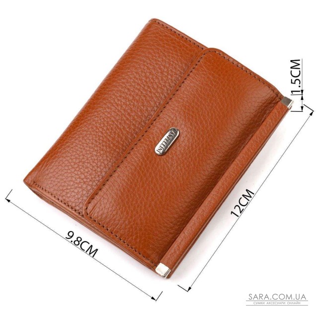 Жіночий гаманець середнього розміру із натуральної шкіри флотар, що має зернисту фактуру. Аксесуар має одне основне відділення з тканинною перегородкою в яке поміщаються купюри всіх номіналів, п'ять кишень для карток (одна під сіточкою), дві приховані кишені та монетницю. Закривається аксесуар у два складання на кнопку. Купуючи шкіряний аксесуар цієї фірми, собі чи на подарунок, будьте певні, що він прослужить Вам не один рік.