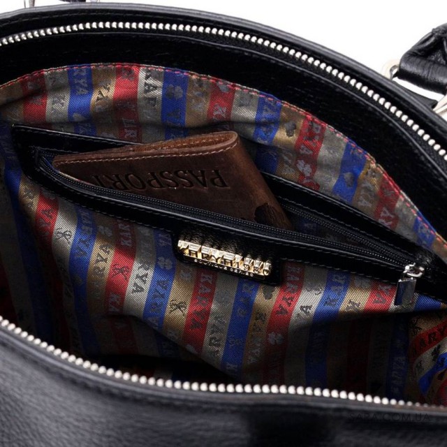 Практична сумка жіноча в діловому стилі з натуральної шкіри, в оригінальному дизайні і класичному чорному кольорі. Фурнітура срібного кольору. Сумку зручно носити у руці, на плечі. Сумка упакована у фірмовий текстильний чохол Karya. Сумка з натуральної шкіри завжди буде чудовим подарунком будь-якій жінці.
