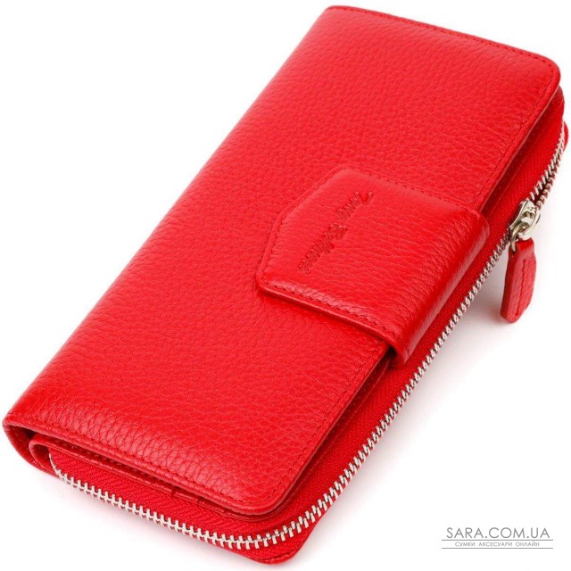Яскравий жіночий гаманець із натуральної шкіри флотар, для якої характерна міцність, зносостійкість та зерниста фактура. Аксесуар складається з одного місткого основного відділення з кишенею-перегородкою на блискавці, монетниці, тринадцяти осередків для пластикових карток, двох прилеглих кишень та трьох відділень під сіточкою для документів. У виробі використано якісну фурнітуру сріблястого кольору. Закривається гаманець на блискавку – основне відділення, та на хлястик з кнопкою – блок для карт. Купуючи шкіряний гаманець собі або на подарунок усі хочуть отримати якісну та стильну річ, саме такі вироби представлені у нашому магазині, а наші досвідчені менеджери допоможуть визначитися з вибором.
