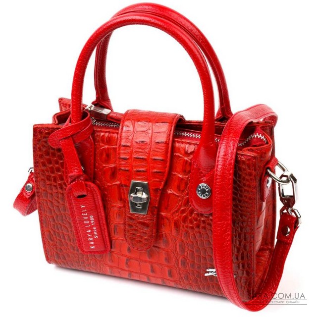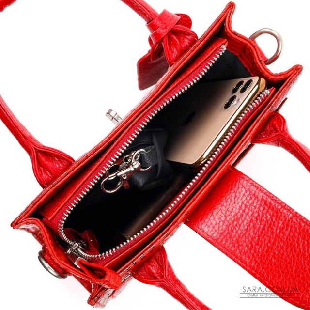 Мініатюрна сумка жіноча з натуральної шкіри, з тисненням під рептилію. Всі матеріали з яких виконано виріб, шкіра, фурнітура, підкладка - високої якості з підвищеними показниками стійкості до різного зносу. Колір цієї сумки – червоний, що дуже добре підкреслює смак та стиль яскравої та сучасної жінки.