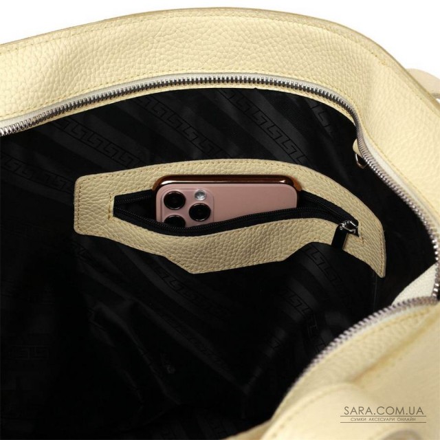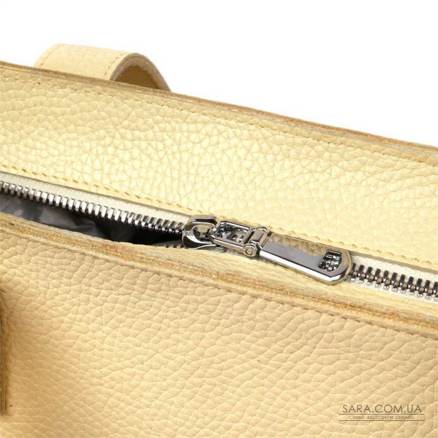 Стильна жіноча сумка у дивовижному лимонному кольорі, що виглядає по-літньому свіжо та красиво. Матеріал виготовлення – натуральна шкіра високої якості з підвищеними показниками стійкості до зношування. Внутрішнє наповнення представлене у вигляді просторого основного відділення з внутрішньою невеликою кишенею. На зовнішній стороні також є кишенька на блискавці.