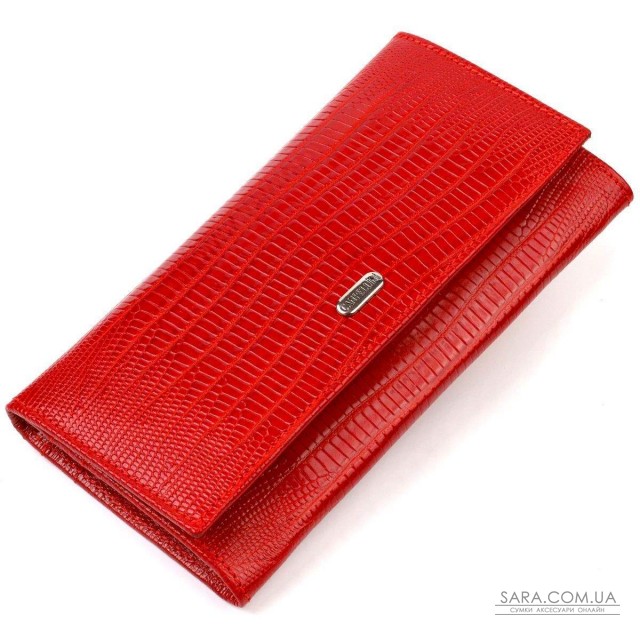 Яскравий фактурний жіночий гаманець горизонтального типу із натуральної шкіри. Аксесуар має одне основне відділення, шість кишень для карток (одна під сіточкою), одна прихована кишеня, три прилеглі кишені та монетниця. Закривається аксесуар клапаном на кнопку. Купуючи шкіряний аксесуар цієї фірми, собі чи на подарунок, будьте певні, що він прослужить Вам не один рік.