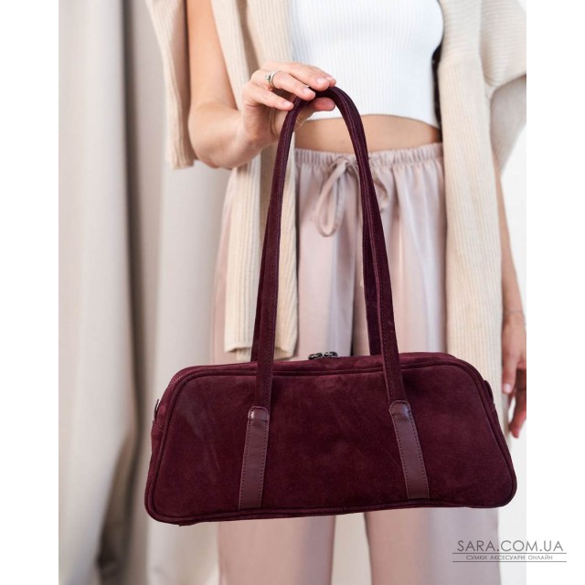 Замшева жіноча сумка К73057 від виробника «Welassie» Україна, колір бордовий, матеріал натуральна замша. Сумка відкривається за допомогою блискавки. Усередині сумка має одну відкриту кишеню і на змійці.Зовні є кишеня для дрібних предметів.