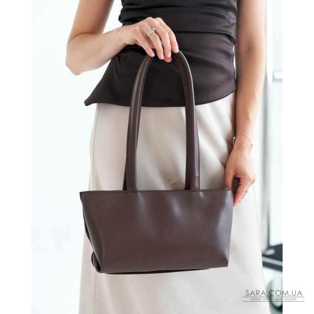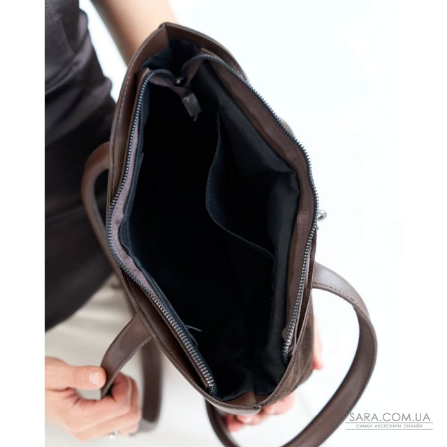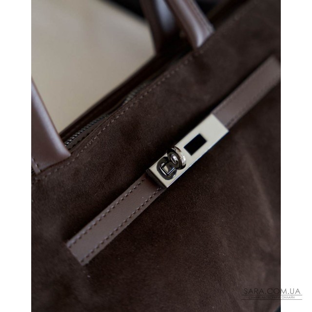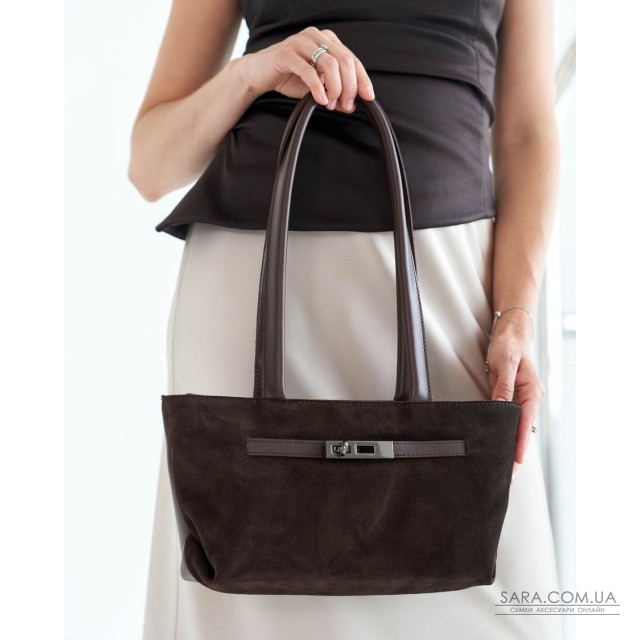 Сумка жіноча 15155 від виробника «Welassie» Україна, колір шоколадний, матеріал екошкіра високої якості зі встакою з натуральної замші. Сумка відкривається за допомогою застібки-блискавки. Усередині сумка має вікритий карман та на змійці
