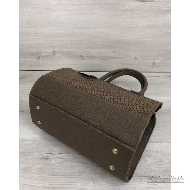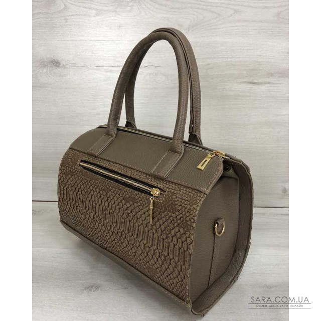 Жіноча, класична сумка WeLassie, виготовлена з штучної шкіри. Має одне відділення на блискавці. Всередині, посередині, вшита косметичка, яка ділить сумку на два відділи. Також всередині є дві кишені: один на блискавці, другий відкритий. Є зовнішня кишеня для дрібних предметів. Ручки міцні - висота їх розраховані, щоб носити сумку в руці, або на згині ліктя. В комплекті є плечовий ремінь.