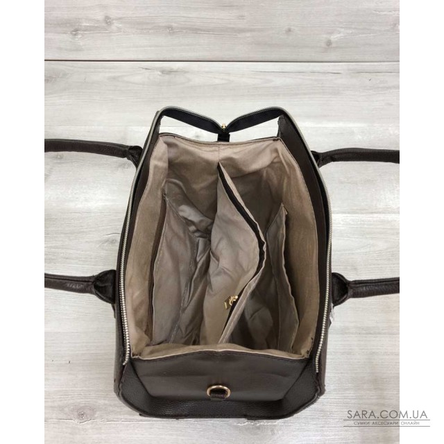 Жіноча, класична сумка WeLassie, виготовлена з штучної шкіри. Має одне відділення на блискавці. Всередині, посередині, вшита косметичка, яка ділить сумку на два відділи. Також всередині є дві кишені: один на блискавці, другий відкритий. Є зовнішня кишеня для дрібних предметів. Ручки міцні - висота їх розраховані, щоб носити сумку в руці, або на згині ліктя. В комплекті є плечовий ремінь.
