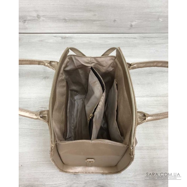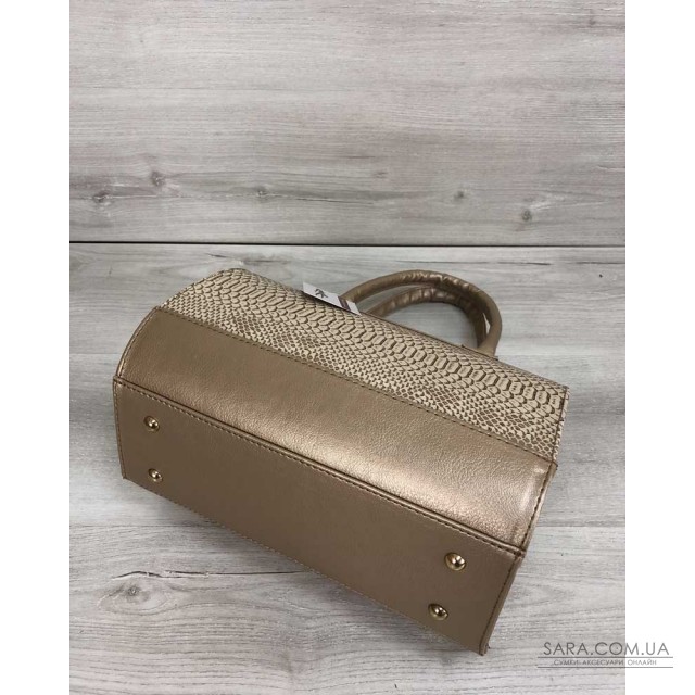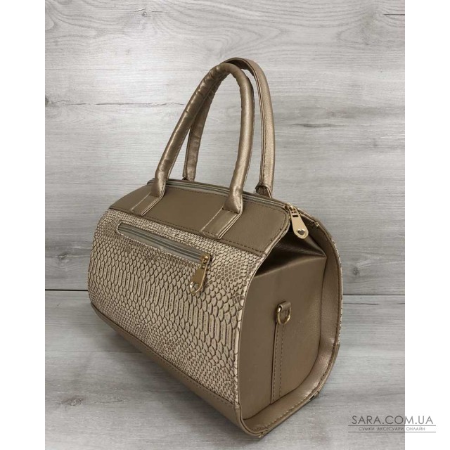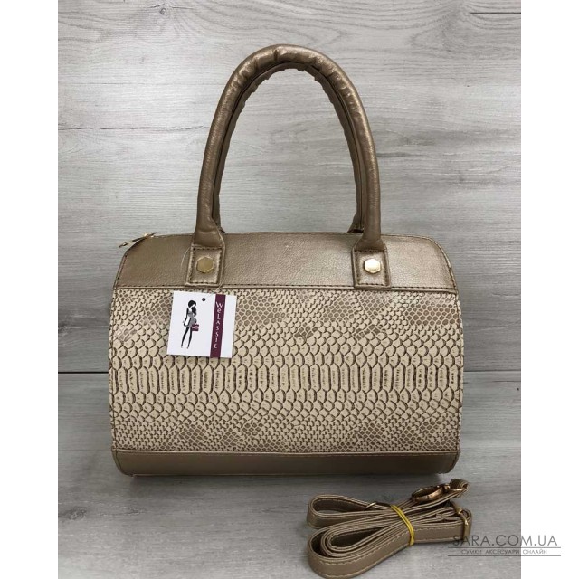 Жіноча, класична сумка WeLassie, виготовлена з штучної шкіри. Має одне відділення на блискавці. Всередині, посередині, вшита косметичка, яка ділить сумку на два відділи. Також всередині є дві кишені: один на блискавці, другий відкритий. Є зовнішня кишеня для дрібних предметів. Ручки міцні - висота їх розраховані, щоб носити сумку в руці, або на згині ліктя. В комплекті є плечовий ремінь.