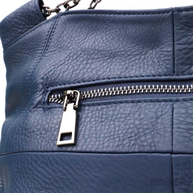 Для максимального комфорту використання передбачений знімний шкіряний ремінець, довжина якого регулюється, дозволяючи носити сумку як на плечі, так і через плече. Фурнітура виконана у вишуканому кольорі срібла, який ідеально поєднується із синім тоном шкіри, надаючи аксесуару сучасний та стильний вигляд.