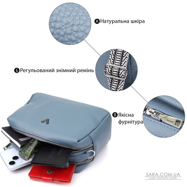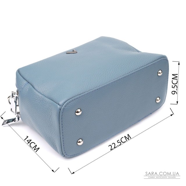 Жіноча шкіряна сумка блакитного кольору – свіжий акцент у практичному виконанні. Ця витончена модель виконана з натуральної шкіри в ніжному блакитному відтінку, який надає образу легкість та елегантність. Короткий силует і продумані деталі роблять сумку чудовим вибором як для повсякденного, так і для більш витонченого міського стилю.
