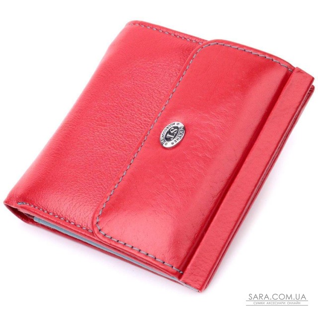 Цікаве кольорове портмоне для жінок середнього розміру із натуральної шкіри найвищої якості. Акцентом цього гаманця є колір, точніше кілька кольорів – він червоного кольору зовні та багатобарвний усередині. Аксесуар складається з двох містких відділень для купюр, кишені на блискавці, чотирьох осередків для карт, прихованої кишені, прозорої кишені та кишені для монет. Зовні виріб прошитий рівним рядком бірюзового кольору по краю і прикрашений металевим логотипом компанії виробника, який розміщений вгорі посередині. Портмоне доповнено надійною фурнітурою та міцною підкладкою. Укомплектований гаманець у фірмову картонну коробку білого кольору.