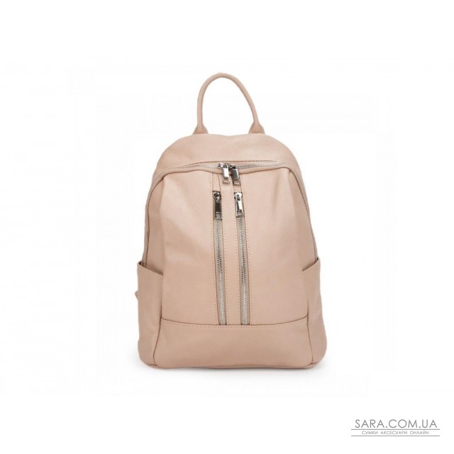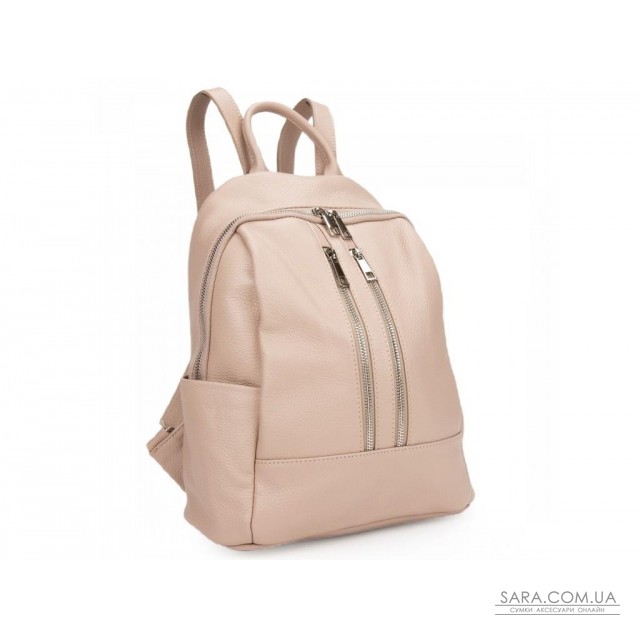 Рюкзак Firenze Italy F-IT-5553P пудровий із натуральної шкіри зернистої фактури.